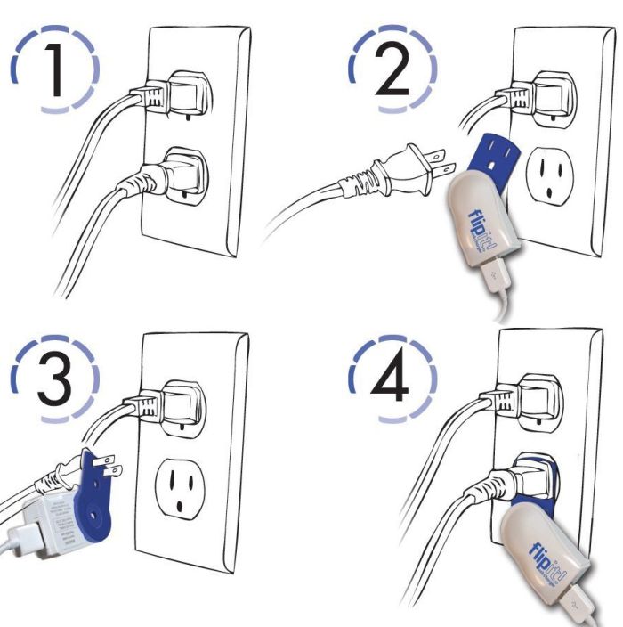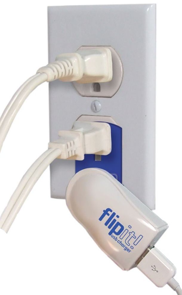 The Flipit! USB charger lets you charge your USB device even when all AC outlets are in use.