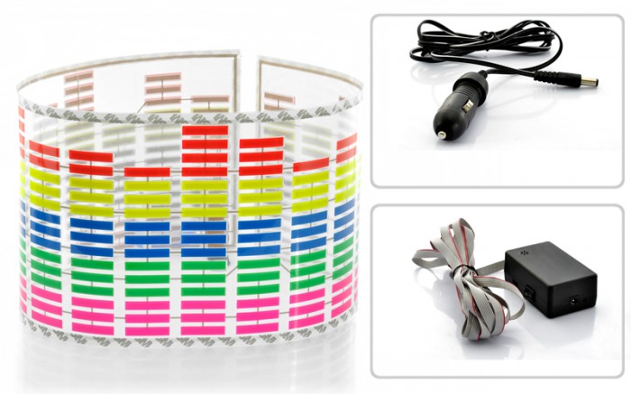 Sound activated equalizer showing the rhythm of the music from your rear view window of your car while driving.