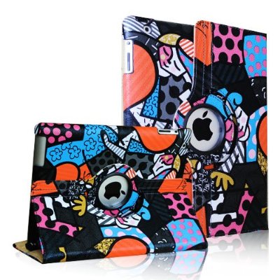 Smart cover seamlessly wake up and put your iPad 3/2 to sleep;Rotates 360 degrees in the case for flexible landscape and portrait viewing; Duel Layer hard interior cover and premium synthetic leather exterior perfectly protects the device against scratches. Snap-n-Roll Design-easily snaps into mount (simply snap on left side first, then right side); Luxury Cartoon pattern design, let your iPad 3/2 looks elegant.
