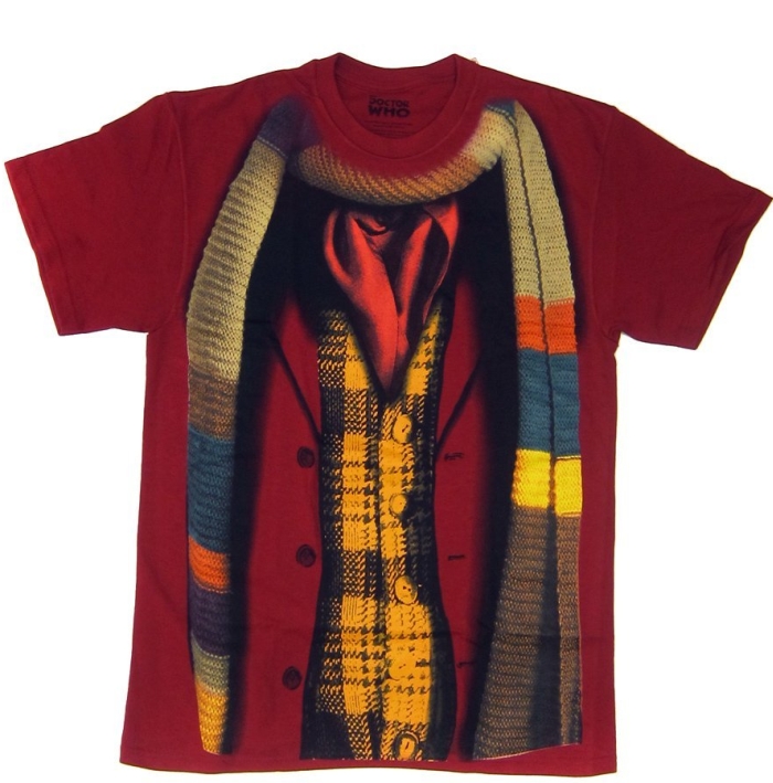 This officially licensed Doctor Who costume shirt features the legendary scarf worn by the 4th Doctor. Price: $19.99 – $21.99