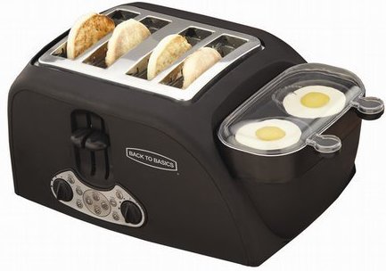 Muffin 4-Slice Toaster and 2 Egg Cooker is a ultimate tool to prepare a complete breakfast in a snap. It simultaneously poaches eggs and toasts muffins or bagels to perfection.