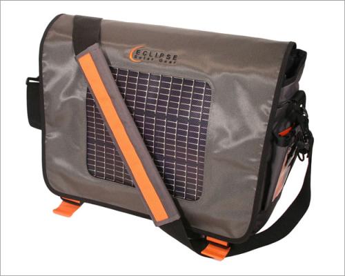 This messenger bag was designed with all of the functionality and looks of a well-equipped messenger bag, but with the addition of a solar charging module.