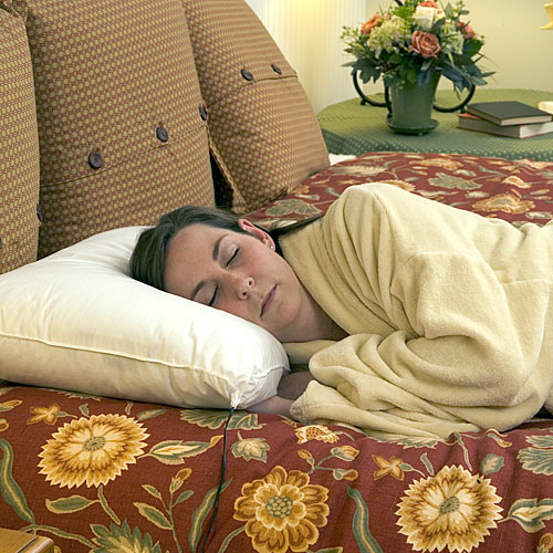 The Sound Pillow softly plays any audio device you want listen to as you fall asleep, such as a CD player or a television.