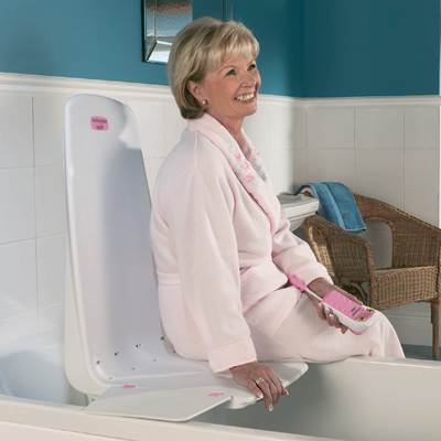 The Bath Lift is a battery powered lift chair designed to help with safe transfers in and out of the bathtub. It gently lowers you or your loved one to the bottom of the tub, allowing for comfortable bathing. When ready, it raises its passenger back up to the top.