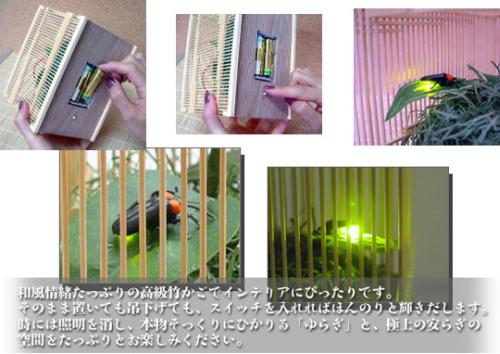 Denshi Hotaru (Electric Fireflies) from Sunnoda are realistic LED light creations in a real Japanese-style bamboo cage with vegetation included. They flicker and glow just like the real thing, and are a stylish accessory to any room or patio.