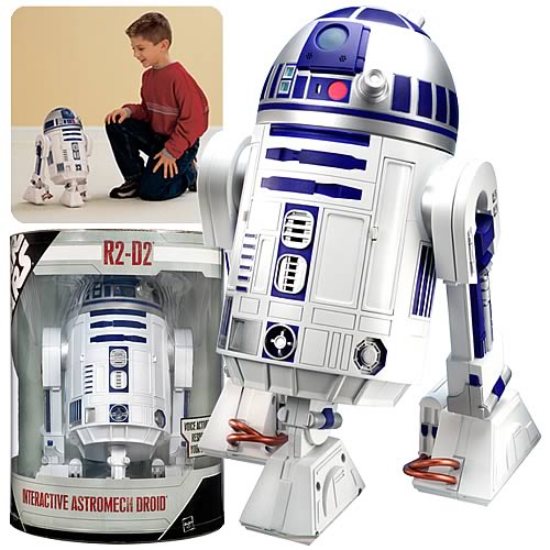 This easy-to-control, hyper-functional droid walks, talks, and responds to your command. Resourceful and adventurous, R2 is ready, willing, and able to serve. He: navigates, patrols, and finds you on his own; guards and protects your room with his sentry room alarm; plays multiple interactive games; remembers and reacts to key Star Wars characters; and more.