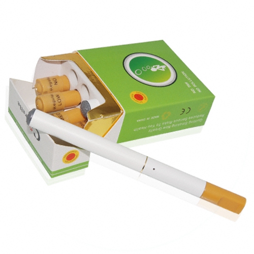 E-Cigarette (or electronic cigarette), the modern method of kicking the smoking habit. Featuring premium cigarette flavor, packaging, look and feel. People will be amazed when they see this realistic e-cigarette pulled out of its ultra-real box package, and witness that it puffs and smokes like a real cigarette, but without the smell or nuisance.