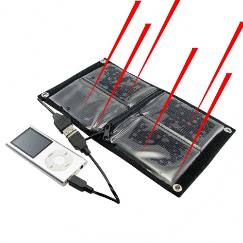 Solar Panel Charger for recharging portable electronics using a USB cable power connection. This thoughtfully designed folding solar panel charger is ideal for the wilderness adventurer or anyone planning an extended backpacking trip.