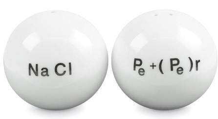 hese contemporary white porcelain spheres spell out “salt†and “pepper†in periodic table form, but you knew that already.