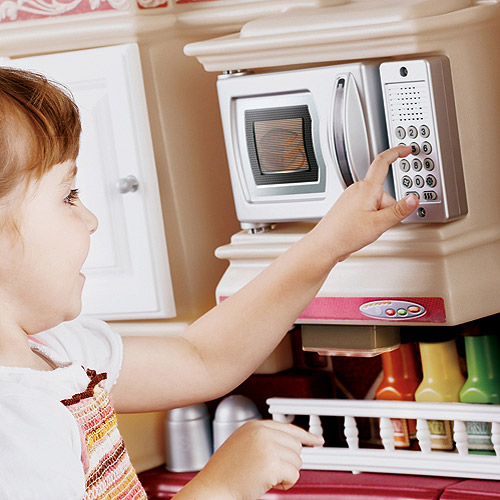 * ”Stainless Steel” oven, microwave and refrigerator enhance role-play and provide valuable storage of playtime accessories