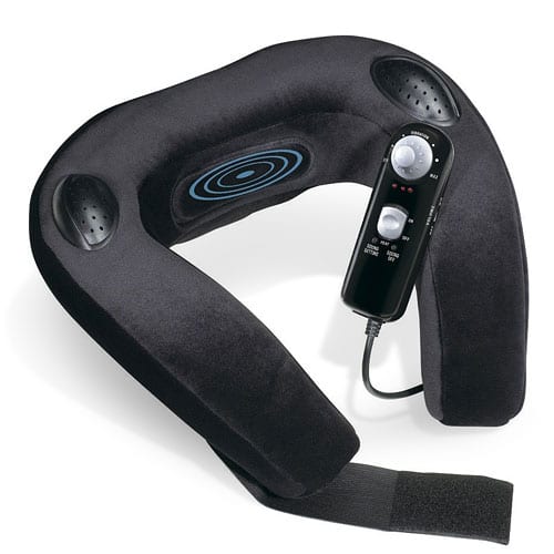 The Body Benefits Vibrating Neck Massager offers you three relaxation therapies: variable speed vibration massage to customize massage intensity, heat and your choice of 10 comforting sounds.