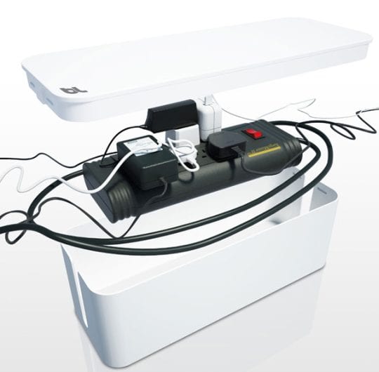 Home » Gadgets » Cable Box Organiser Gadgets Cable Box Organiser March 17, 2009 37 Under or on the desk, next to the computer, or behind the TV, loose tangled cables are always untidy dust traps. CableBox is the solution to solve these issues. Simply place your power strips or surge protector inside CableBox. link