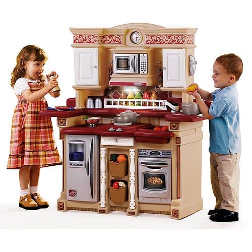 The accurately detailed kitchen has plenty of activities and accessories that encourage kids to play. The kitchen features five realistic electronic features as well as a special “frying pan” and “boiling pot” that activate frying and boiling sounds on the front burner.