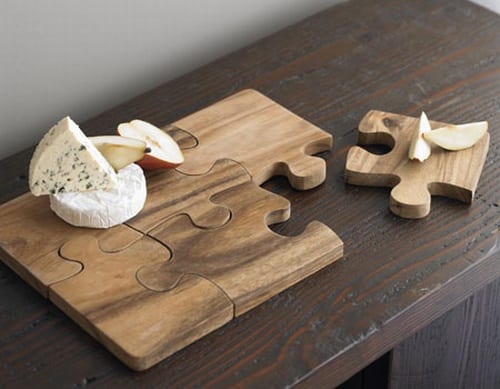 Home » Design » Puzzle Board Design Puzzle Board August 12, 2009 24 Should you interlock the pieces of our solid acacia puzzle board for use as a cutting platform, or separate them as individual servers? A conundrum, for sure – but easily solved by using it for both purposes as needed. link