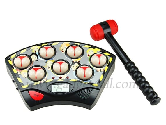 To hit the bum, give them a good hit on the bum with the rubber hammer provided when they light up. Be quick though! Once a light goes out, the chance to gain a point is lost! There are 3 red lights on the surface of the game. Each lights represents how many lives you have. To start, you have 3 lives.
