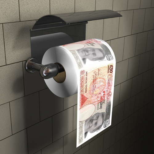 If the recession has hit your pocket and you’re angry with certain greedy bankers, you can now show your displeasure in an appropriate way with this £50million pound note toilet paper.