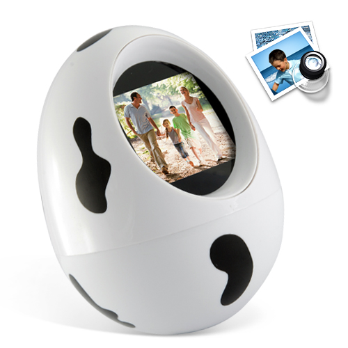 Cherish and display your favorite photos in style with this egg shaped digital photo frame. This Moootastic photo frame tumbler has a unique shape and 1.5 inch display to help show off the pictures you care about the most.