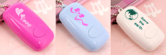 Small and clipping easily to your mobile, the Eco-Otome Toilet Sound Blocker makes the noise of a toilet flushing to hide the other noises you might be making. Press the button twice and the sound of flushing lasts for 25 seconds. Press it again twice to stop the noise. It comes in three different designs: pink has a cute ‘love’ mark; blue is decorated with a ribbon motif; white has a green slogan – after all, this little device means you won’t have to flush for real and thus saves water.