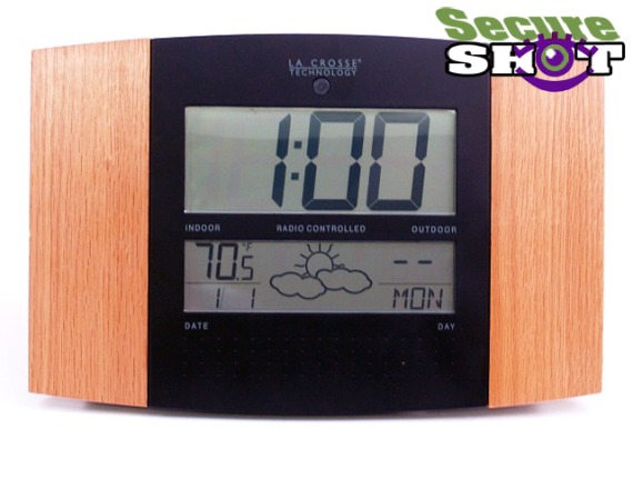 SecureShot atomic wall/desk clock can quickly be placed in any indoor location without the worry of AC outlets or extension cords. With our exclusive copyrighted micro PIR motion activation system, there is virtually no battery drain while on standby, and no false alarms.