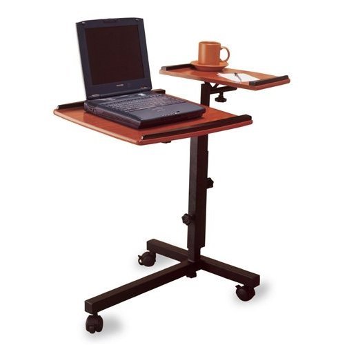 This multipurpose cart for laptop computers can also be used for writing, eating, drawing or reading. This laptop desk features two shelves, both of which tilt either way allowing you to choose which side you want the leg on.