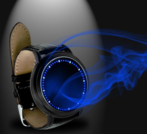 Instead of pressing buttons like other LED watches, The Abyss relays temporal information with a tap of the screen – YES, The Abyss is a touchscreen Japanese LED watch . The Abyss stays broodingly dark like Conradian Darkness Heart until you tap its crystal surface upon which the screen explodes with blue and white LED pixies like a thousand baby Bruce Springsteens dancing in the dark against a thousand Billy Idols dancing with themselves in a River Dance to the Death! To adjust the time, keep your finger on The Abyss’ crystal surface for a few seconds to enter hour and minute change mode.