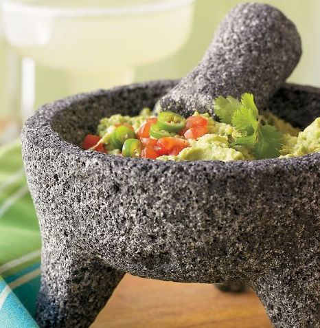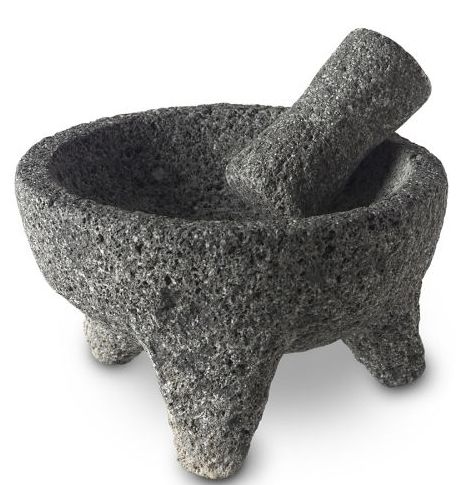 The mortar and pestle carved from volcanic rock is among the world’s oldest kitchen tools. Our molcajete (mortar) and tejolete (pestle) are hand carved from a single piece of basalt rock, making each piece unique.
