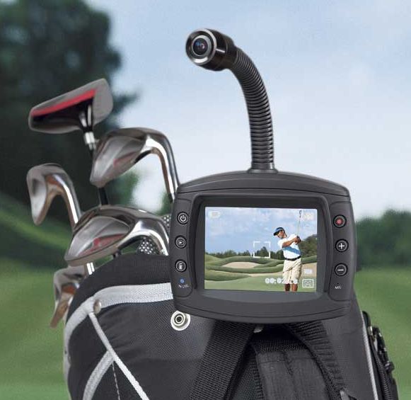 Correct your swing while you’re on the course. Hands-free video recorder mounts to golf bag, push, or golf cart. One button recording, frame-by-frame playback. Recorder captures your entire body and swing from 6 feet away. Play back through the built-in screen, your TV, or computer.