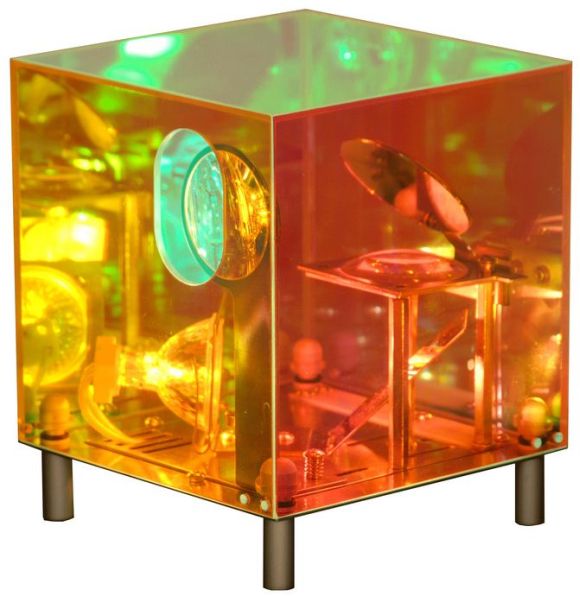 This projection clock is made of a mirror acrylic glass cube. Switched on, the colors change aspect depending on the viewing angle. Switched off, it becomes again a surprising mirror. Project also your own photos or creations with selfprinting or drawing on transparent slide.