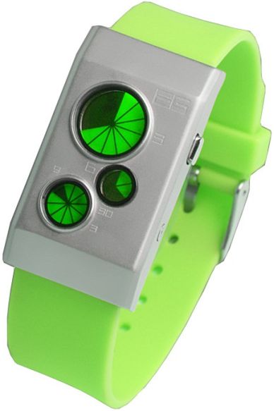 The EG5 watch by EleeNo features an interesting time display: 3 circular faces showing the hour, the dozens of minutes and finally the minutes.