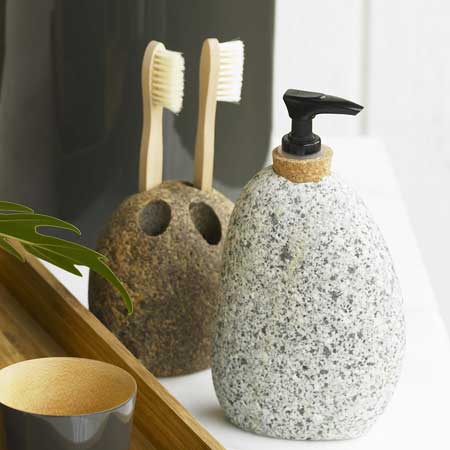 Home » Decor » River Stone Dispenser & Toothbrush Holder Decor River Stone Dispenser & Toothbrush Holder August 17, 2010 20 The river stone set replaces gawky toothbrush holders and tacky lotion and soap dispensers with textured stone salvaged from river bottoms. link