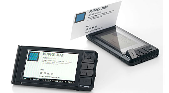 The Pitrec can scan a business card as an image in next to no time and keeps up to two thousand files. All you do is slide the card through the slot and a mini camera with a OCR scanner reads the card.
