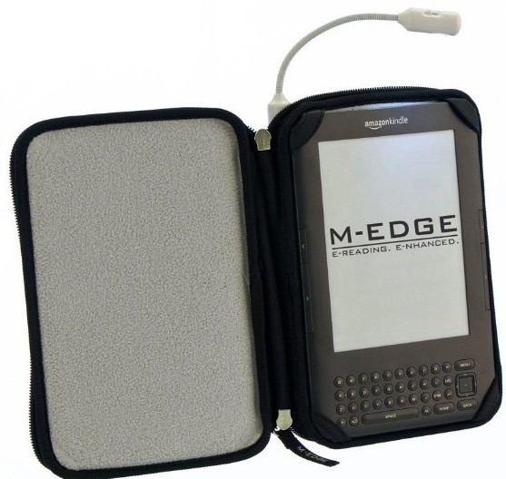 The M-Edge Latitude Jacket is made of ripstop nylon and soft microsuede and is compatible with the M-Edge e-Luminator booklight. The large zipper pocket ensures Kindle’s accessories stay organized and double zipper closure allows access to all ports.