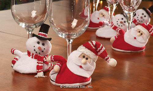 Designed for wine glasses, these coasters are the perfect way to protect your tabletops during the holidays. 6 piece set includes three snowmen and three Santas.