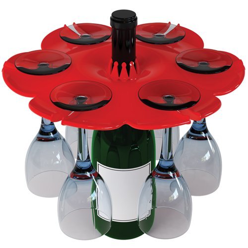 Glass, bottle, bottle, glass. It is never easy to carry them all. So stop juggling. Bottle Bouquet looks like a flower but fits over the neck of a wine bottle to carry six empty wine glasses.