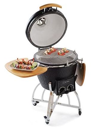 Kamado Ceramic Charcoal Grill features superior dual-wall insulated ceramic construction that circulates charcoal heat more efficiently than other grills for faster, more even cooking.