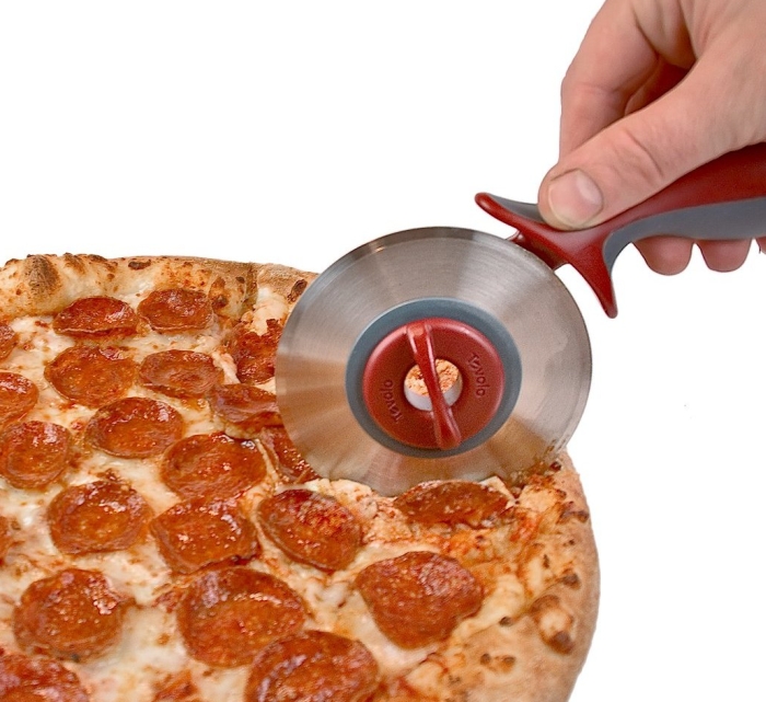 This dual pizza wheel by Tovolo is ideal for slicing pizza, focaccia and more. This cool pizza tool features two interchangeable blades; a traditional stainless steel blade, plus a polycarbonate blade that minimizes scratching on non-stick surfaces. It has a comfortable ergonomic handle, while the blades that lock securely into place are also removable for easy cleaning.