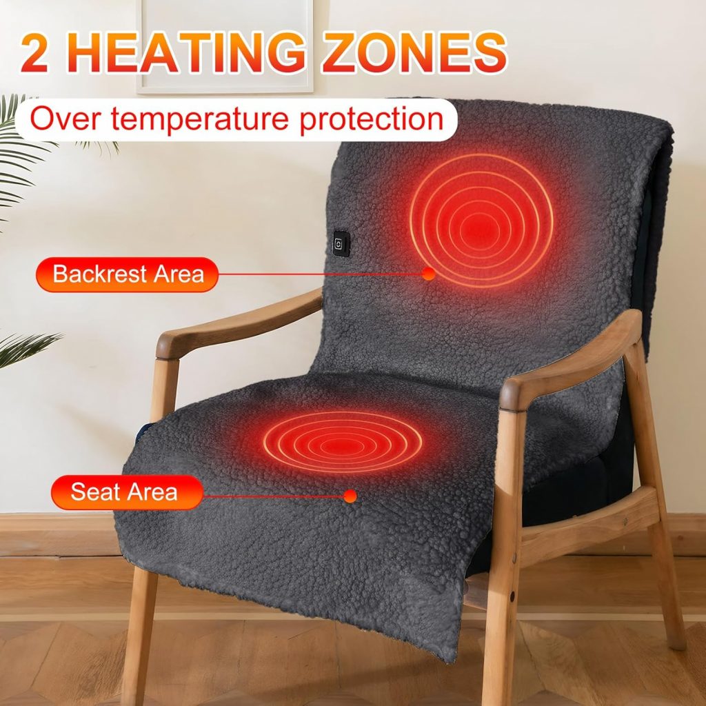 Upgraded Dual-Zone Heated Chair Pad: Flannel and Lambskin Comfort, 3 Customizable Heat Settings (Up to 149F), and Portable Power Bank Design