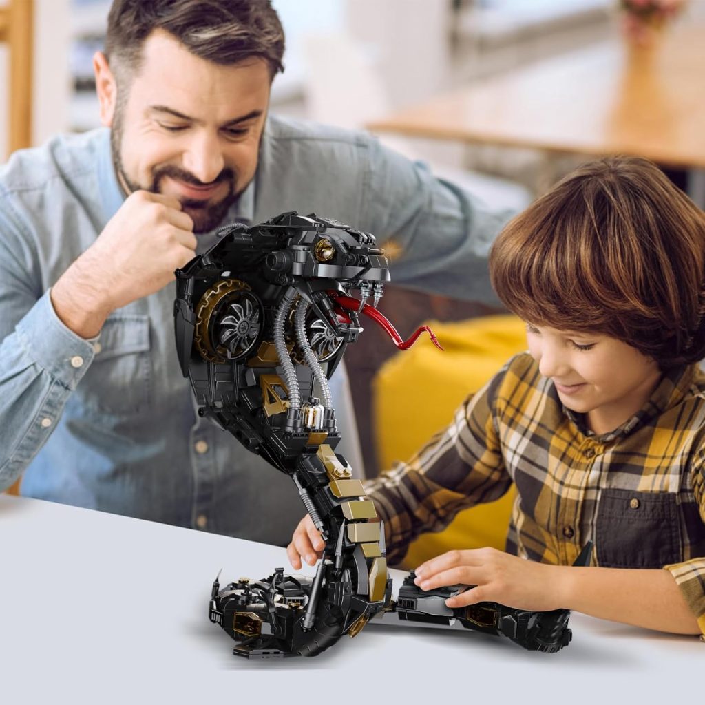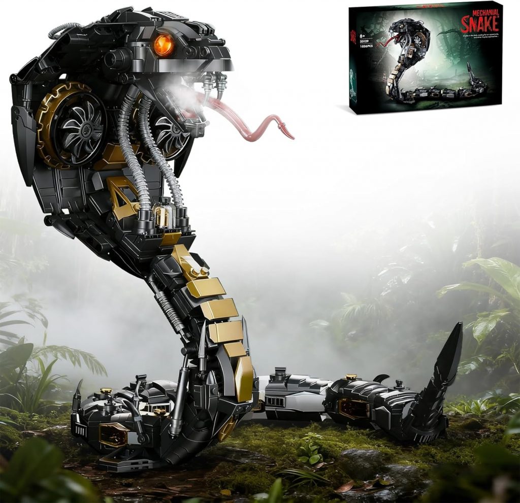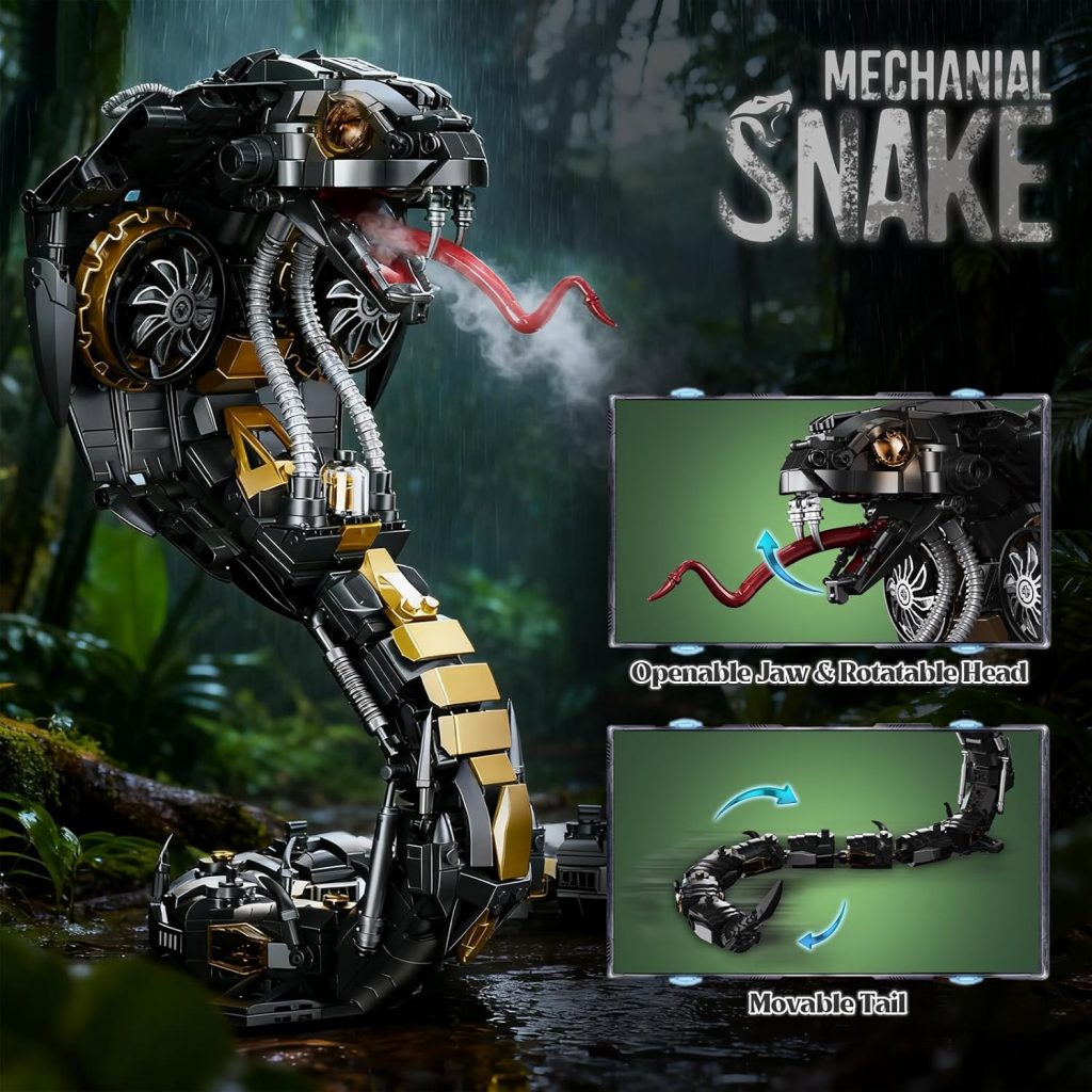 Mecha Snake Building Block Set: 1036-Piece Cyber-Mechanical Serpent with Dynamic Movable Design and Wall Art Display Frame