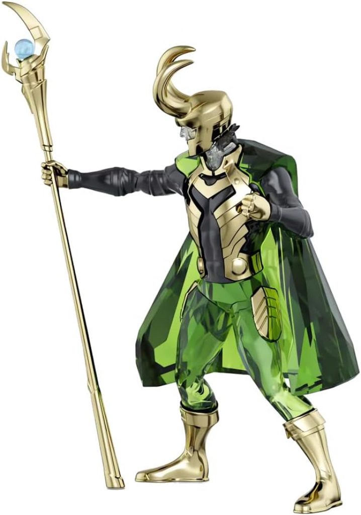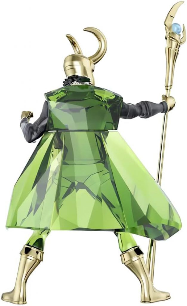 Swarovski Marvel Loki Figurine. This Loki figurine is crafted with 282 facets along with touches of gold-tone lacquered metal forming his chest armor, scepter, horned helmet, and boots.