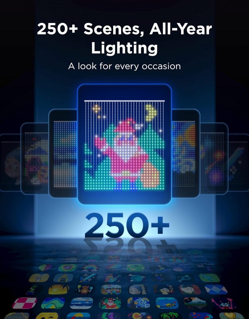 Unleash your Higher Creative Freedom with these LED smart curtain lights. The system offers a 30-layer canvas for animation uploads and access to over 1,000 assets. You can craft stunning, personalized light shows perfectly suited for different holiday decorations and personal preferences.