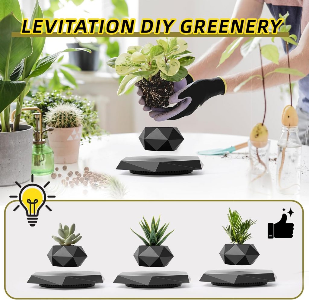 Leekimid Magnetic Levitation Flower Pot: 360-Degree Floating Rotation and Modern Design for Unique Home Decor