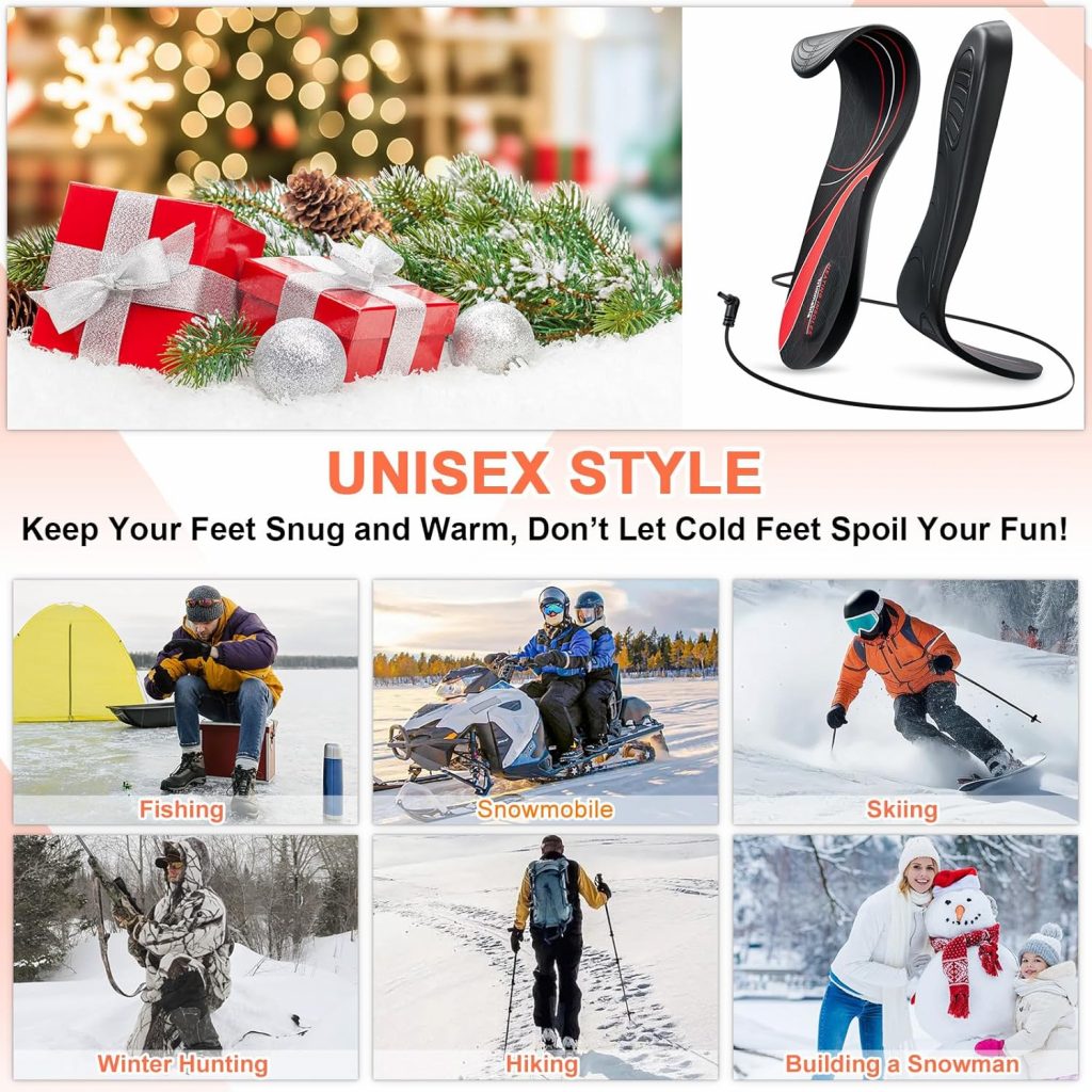 • heated insoles adopt carbon crystal nano heating material, covering the entire foot to keep your feet warmer evenly and quickly. The knee-wrap-style dual-heat control switch has anti-misoperation protection and 3 temperature levels, so you can adjust the heat of the heated insoles or knee wrap separately to match your comfort.?