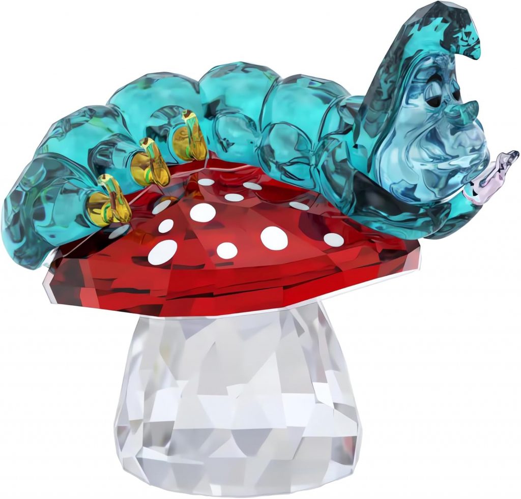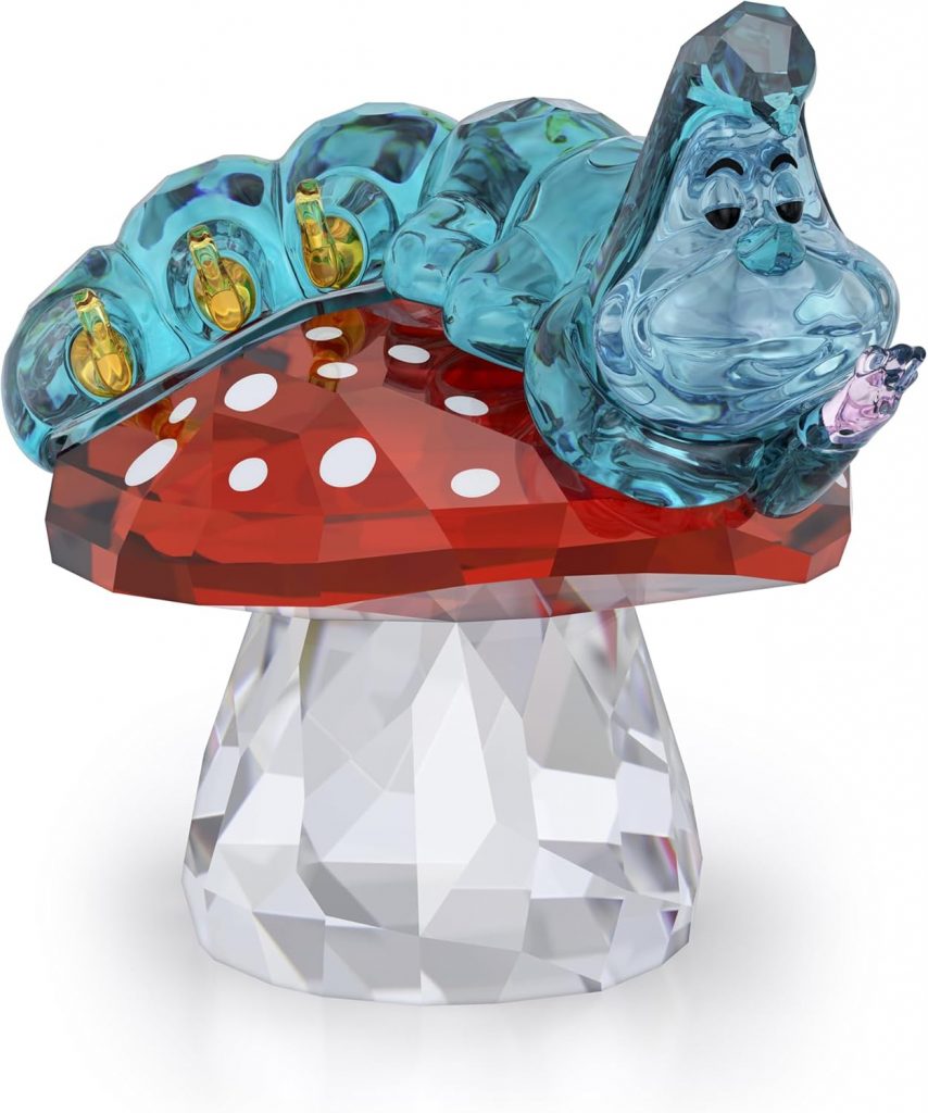 - Enchanting Beauty: Imagination comes to life in this cute figurine inspired by Disney’s Alice in Wonderland, featuring the blue caterpillar atop a magical mushroom in sparkling multicolored crystals