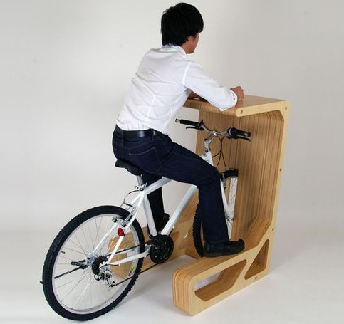 Sitting on the saddle of the bicycle you can take a coffee break, check emails on your phone or laptop, and so on
