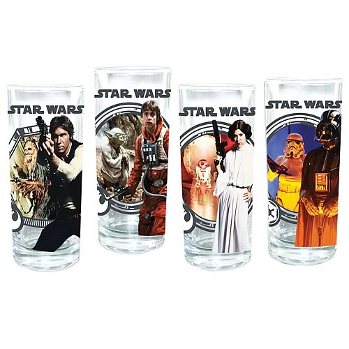 This Star Wars Glasses 4-Pack makes a great gift or the perfect addition to any collector’s bar. The designs on these 10 oz. glasses include Han Solo with Chewbacca, Luke Skywalker with Yoda, Princess Leia with R2-D2, and Darth Vader with Stormtrooper.
