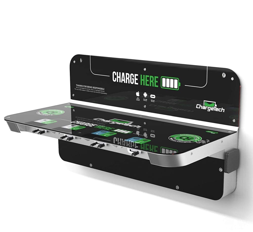 ChargeTech Wall Mounted Power Shelf Charging Station w/ 8 High Speed Cables for All Devices