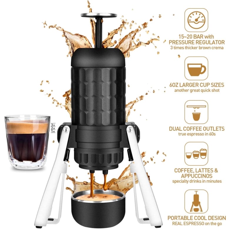 Home » Gadgets » Portable Espresso Maker Gadgets Portable Espresso Maker August 9, 2019 66 Newly Equipped with the ?innovative pressure regulating valve?, the perfect 15~20 bar pump in your hand extracts consistent great-tasting espresso with a thicker and smoother créma. You’ll never sacrifice a REAL ESPRESSO for convenience with this quality STARESSO espresso machine A 6 fl.oz (180m) water tank and a large filter basket doses and tamps 18~22 grams of ground coffee lets you pull single shots, double shots or lungos. Specialty drinks, like Caffé Americano, Caffé Latte, Cold Brew, Cappuccino and Ice Cream Coffee are easier than ever with the machineThe *Mirage works best with all varieties of ground coffee. Just fill in finely ground coffee, add hot/cold water and pump the pop-out pressure bar, a decent shot is right in your hand. Highly modular designed makes it super easy to disassemble and rinse it. Totally effortless!