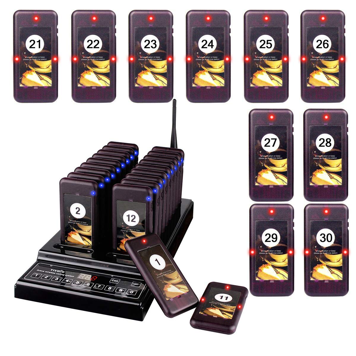 Home » Gadgets » Wireless Calling System Restaurant Gadgets Wireless Calling System Restaurant August 14, 2019 66 Retekess T112 Restaurant Pager System with 30 Coaster Pagers has all the features that TIVDIO calling system has; Contains 30 pagers and 1 keyboards; Independent storage memory avoiding data lost; Self testing while power on; Add max. 999 pager receiverEvery Transmitter has it is own ID, so 2 or more transmitters can call the same pager at the same time by setting them to the same ID; 2 or more pagers can be paired up as the same number, one pager also can be matched with 2 or more numbers, meets your multiply needs; NOTE: Retekess T112 paging system with 30 pagers is compatible with TIVDIO T112 wireless calling systemAdopt advanced RF wireless technology; Transmission distance between the transmitter and the receiver;165 to 330ft indoors;0.3 mile in the open air; Working distance is about 1000m or 3080ft in the open air;depends on many factors