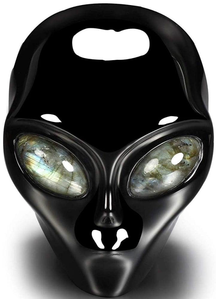 Skullis 4.0″ Black Obsidian Crystal Alien Skull with Labradorite Eyes