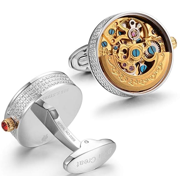 Home » Gadgets » Rhodium PVD Skeleton Automatic Working Watch Movement Cufflinks Gadgets Rhodium PVD Skeleton Automatic Working Watch Movement Cufflinks September 16, 2019 88 0.6 centimeters highThese are Rhodium PVD skeleton automatic working movement cufflinks.5 years warranty make you feel free to buy and long term useThe 18k gold plated skeleton automatic movement is encased in the cage set in Rhodium PVD; CNC with hand made process inlay totally 348 pieces of Hearts and Arrows CZ stones on the cages and 2 “Preciosa Crystals” on the crowns. Looks quite luxury and eye-catchingIn order to ensure more protection, the cage has designed with an innovative device to prevent the movement falling off; The outer metal parts made of 316 stainless steel with hand made high skill mirror-polishing and no welding trace